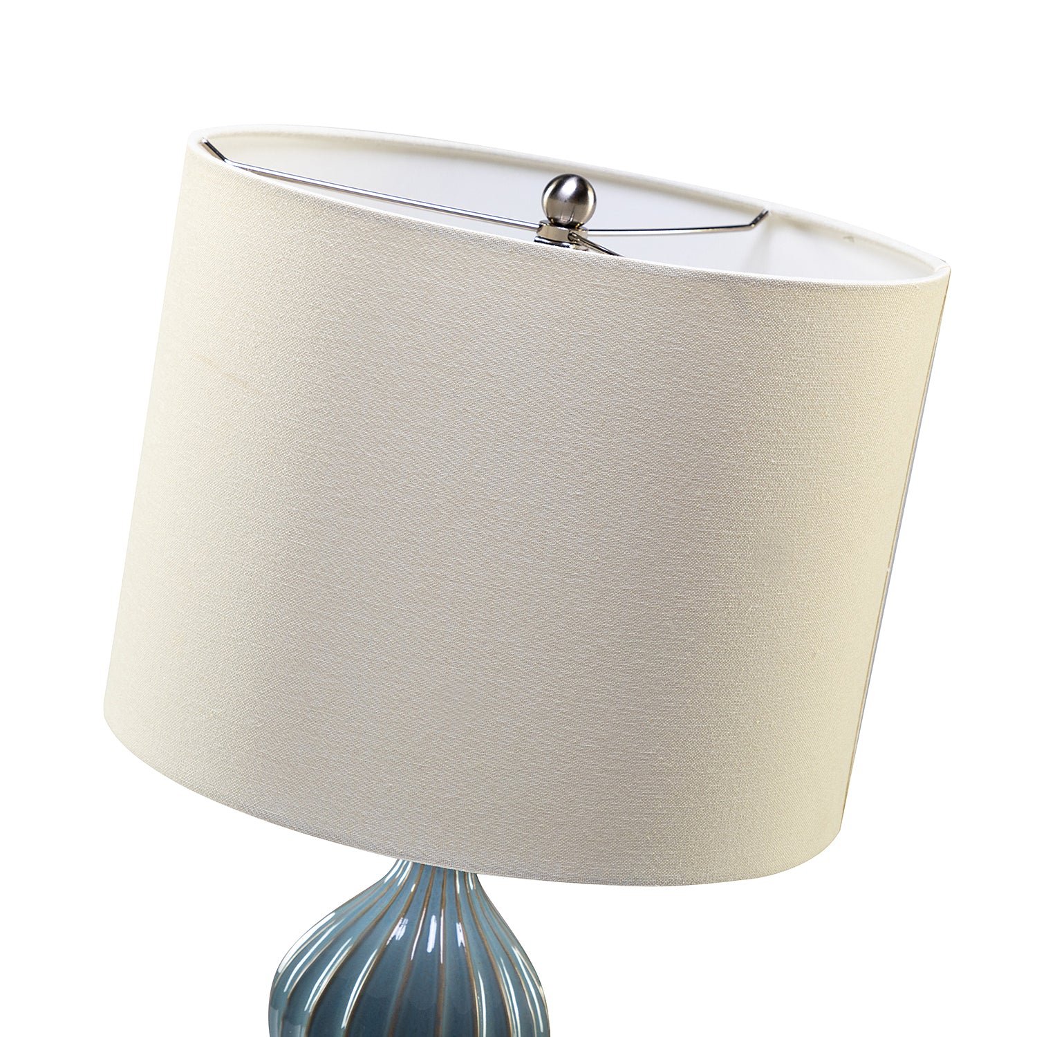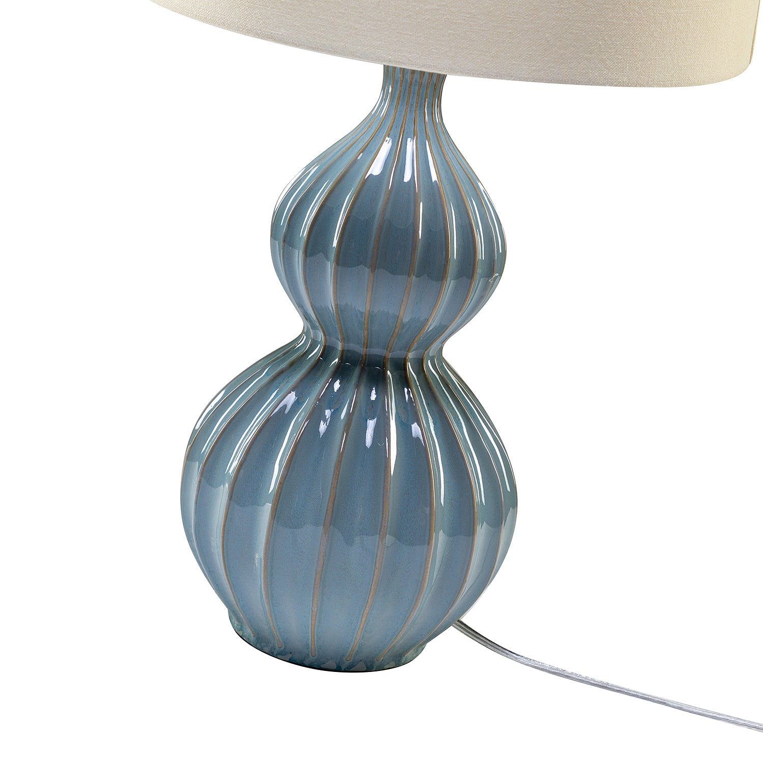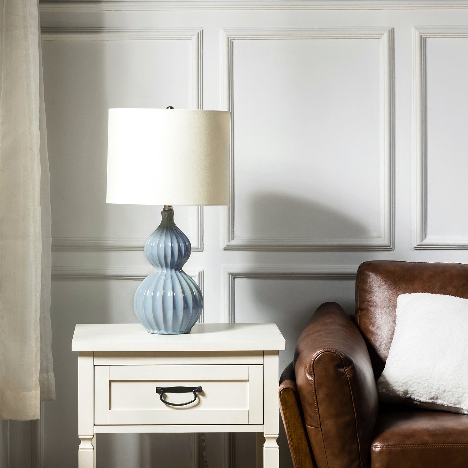Misty Valley 24" Modern Bedside LED Table Lamp with Linen Shade and Gourd-Shaped Ceramic Base