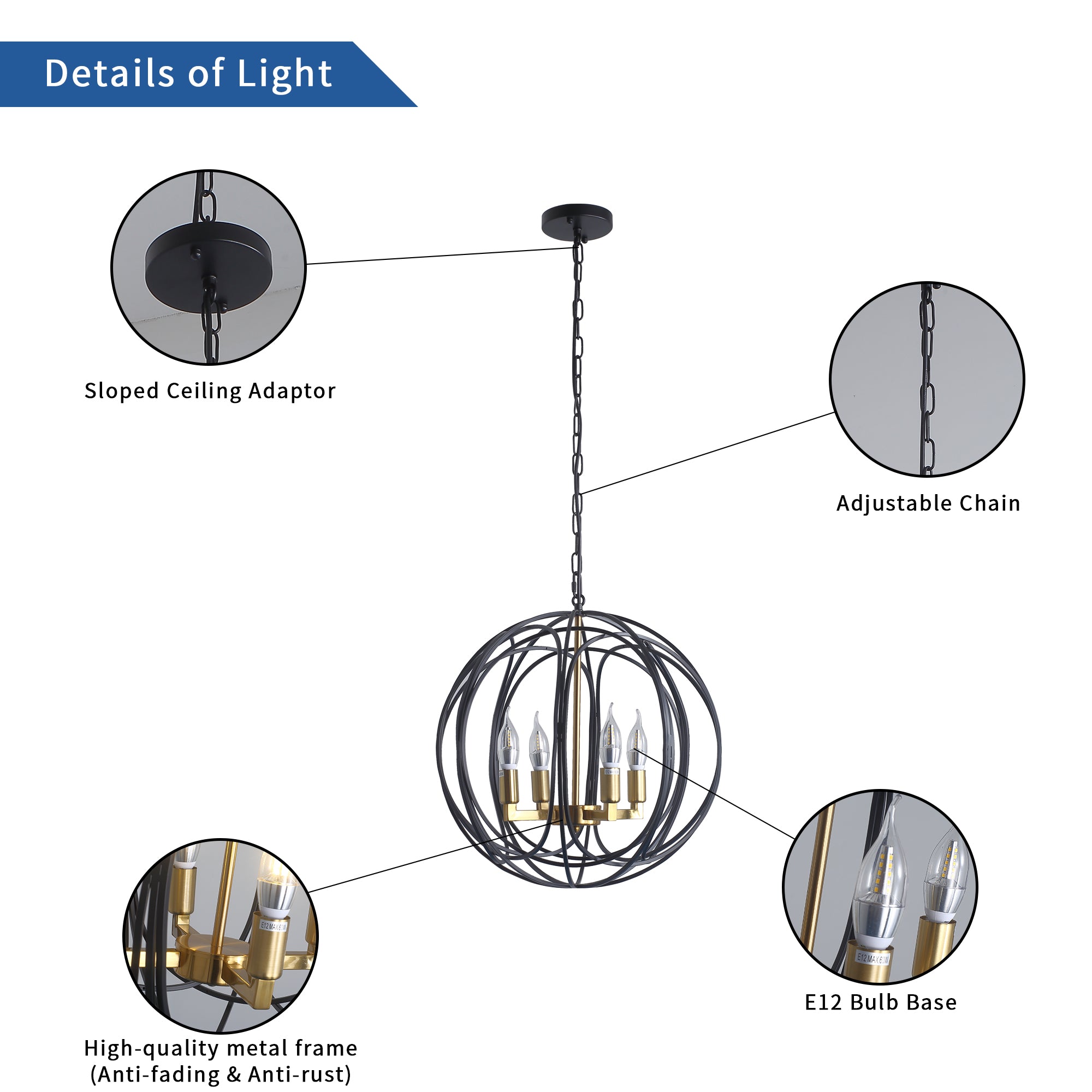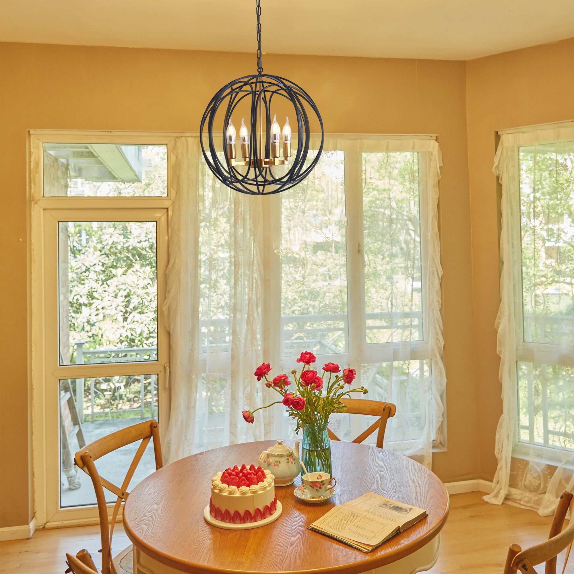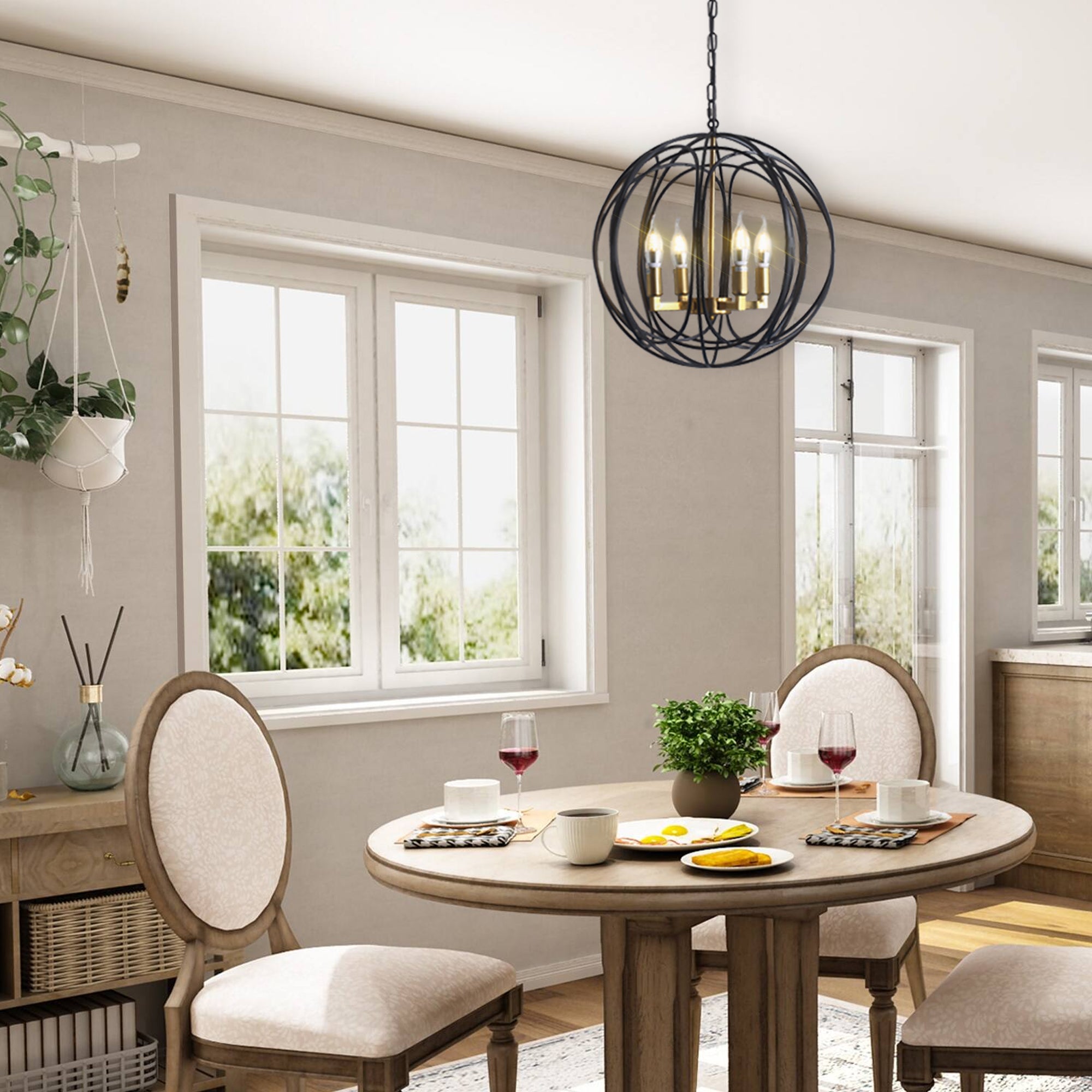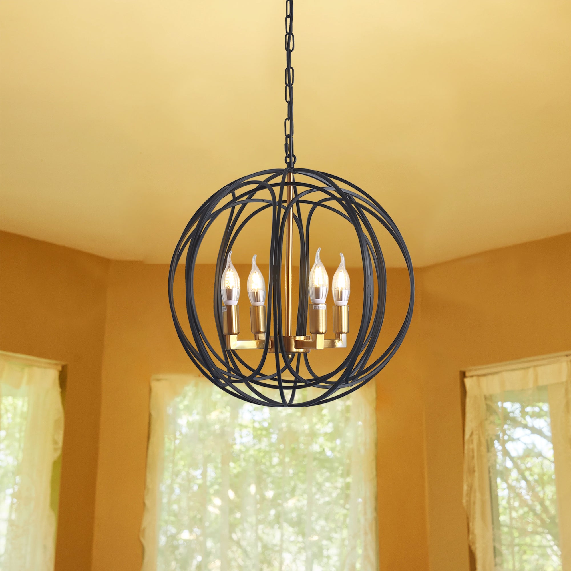 Misty Valley 4-Light Modern American Spherical Globo Chandelier,Classic Iron Metal Ceiling Light