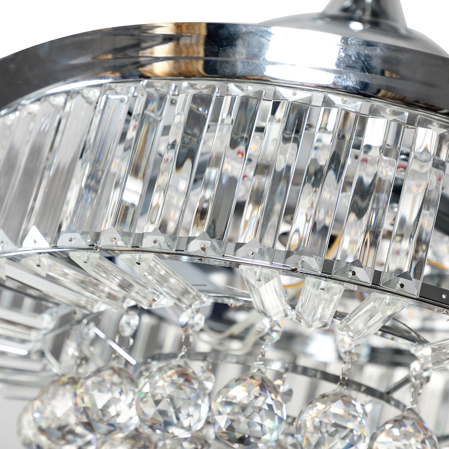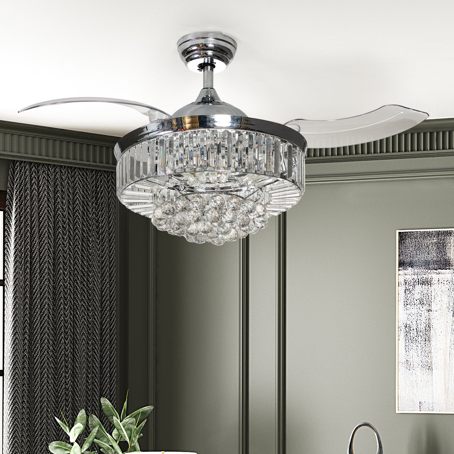 Misty Valley 42in. Bellini Glam Chrome Crystal 3-Blade LED Retractable Ceiling Fan with Remote Control