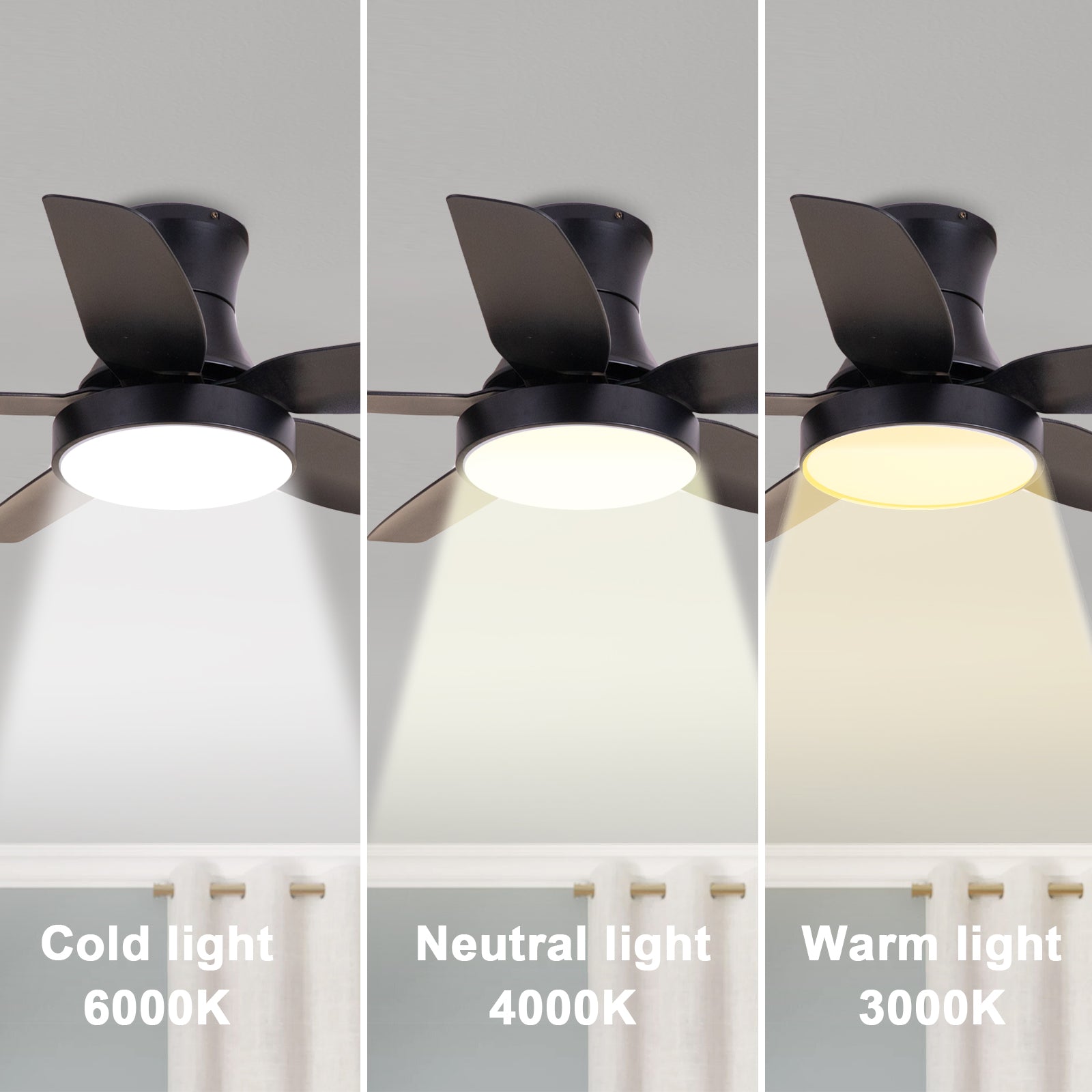 Misty Valley 46in. Modern Black Flush Mount Ceiling Fan with Light and Remote Control, Low Profile Ceiling Fan with 5 blades, 3 Light Color, 6 Speeds for Living Room, Bedroom