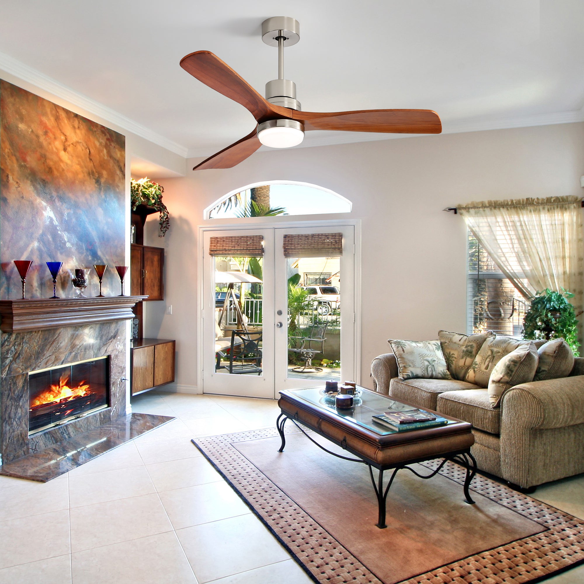 Misty Valley 52" Light Brown Ceiling Fan with Lights, Ceiling Fan with Remote Control, Noiseless Reversible DC Motor and 3 Wood Blades, Timer, 6 Speed for Patio Bedroom, Office