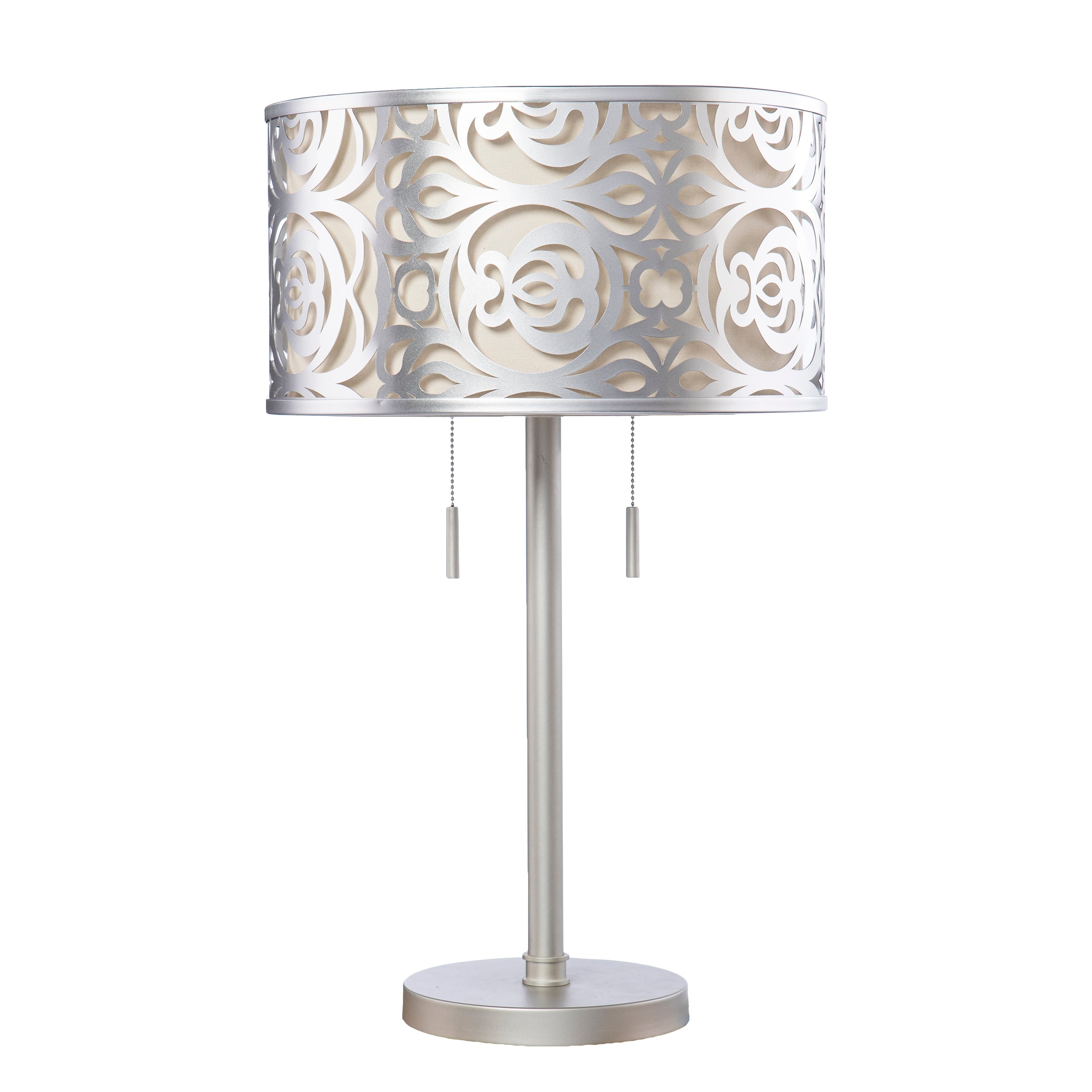 Highlight your contemporary style with this silver table lamp. The metal base crafts a modern look while a textured, cutout shade creates a soft, alluring glow. Place on your nightstand to illuminate your reading list or add to your desktop to light up your workspace. Modern décor steals the spotlight when you bring home this unique table lamp.
