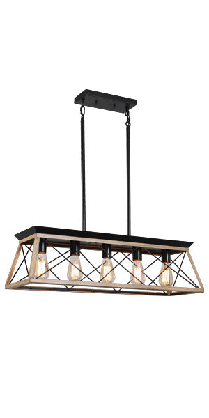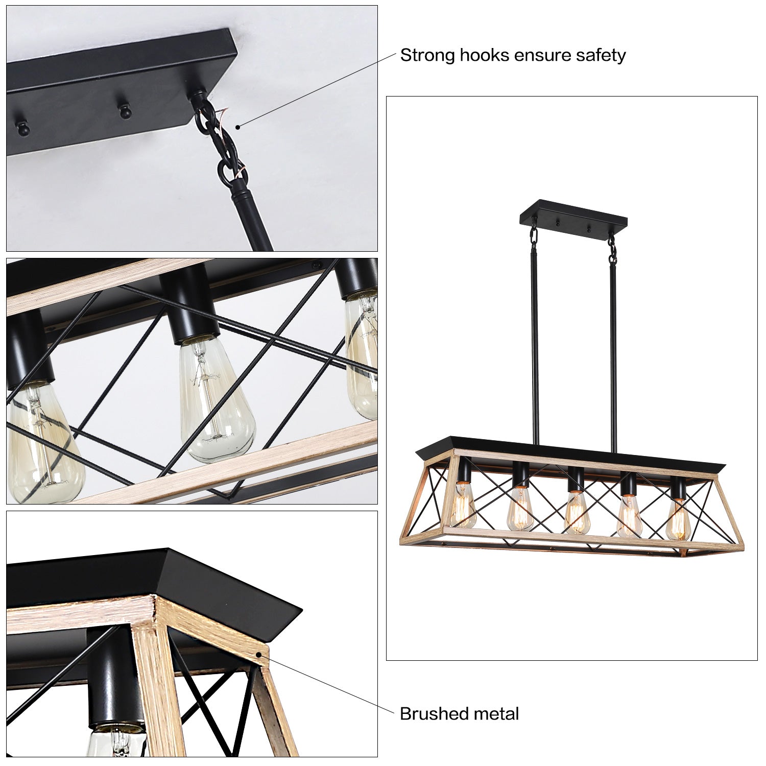 Misty Valley Oak Farmhouse Chandeliers for Dining Room,Rustic Kitchen Island Light Fixture,5-Light Industrial Kitchen Island Pendant Light